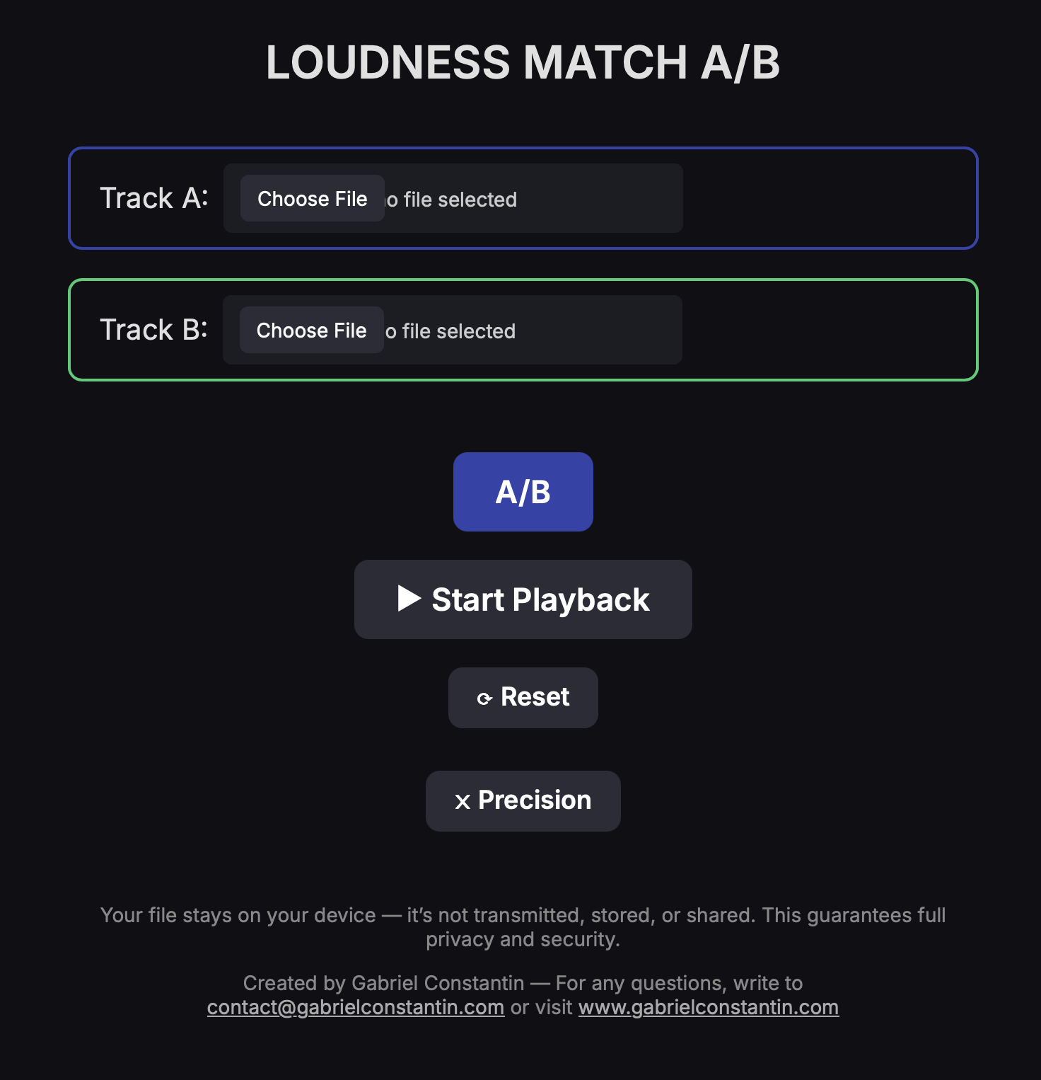 Whether you’re mixing, mastering, comparing edits, or double-checking how your audio will be perceived across streaming platforms, Gabriel’s loudness tool, ABMatch, helps you make informed choices—privately, precisely, and instantly.